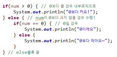 만약 여기서 "0은 크지도 작지도 않다"를 추가해서 출력하고 싶다면,