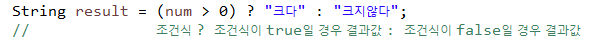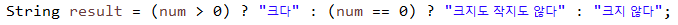 #삼항연산자 : 피 연산자가 3개 => 값 3개와 연산자 1개로 이루어짐 (조건식 형식으로 쓰임)