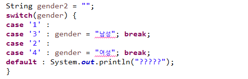 그래서 위 gender2도 " " 값이 없게 초기화 되었다.